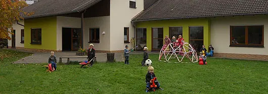 Wir bieten ein modernes Gebäude mit Außenspielanlage an.