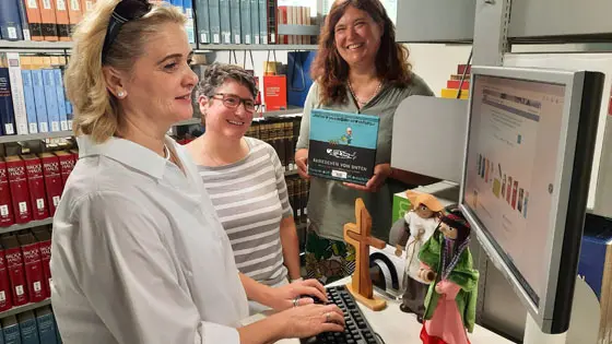 Die Bibliothek im Theologischen Seminar der EKHN, im Schloss Herborn, ist seit einigen Jahren öffentlich. Die Präsenzbibliothek beherbergt die wissenschaftliche Literatur, die nicht nur für die Seminaristen zur Verfügung steht, sondern allen Interessierten. Bibliotheksleiterin Meike Lauer, Isabella Hanstein und Bianca Pfeifer kümmern sich um insgesamt 68.000 Buchbände und Fachzeitschriften. Aus der Funktion des Hauses als Ausbildungsstätte für Pfarrerinnen und Pfarrer erklärt sich, dass theologische Veröffentlichungen den größten Raum einnehmen. Unter ihnen ist die Praktische Theologie am stärksten vertreten, aber auch historisch theologische und exegetische Publikationen finden sich in reichem Maße.